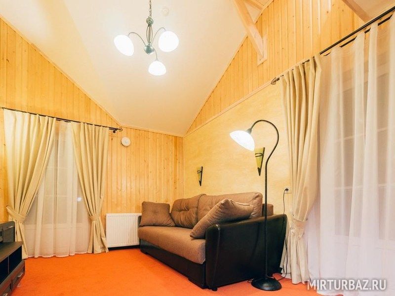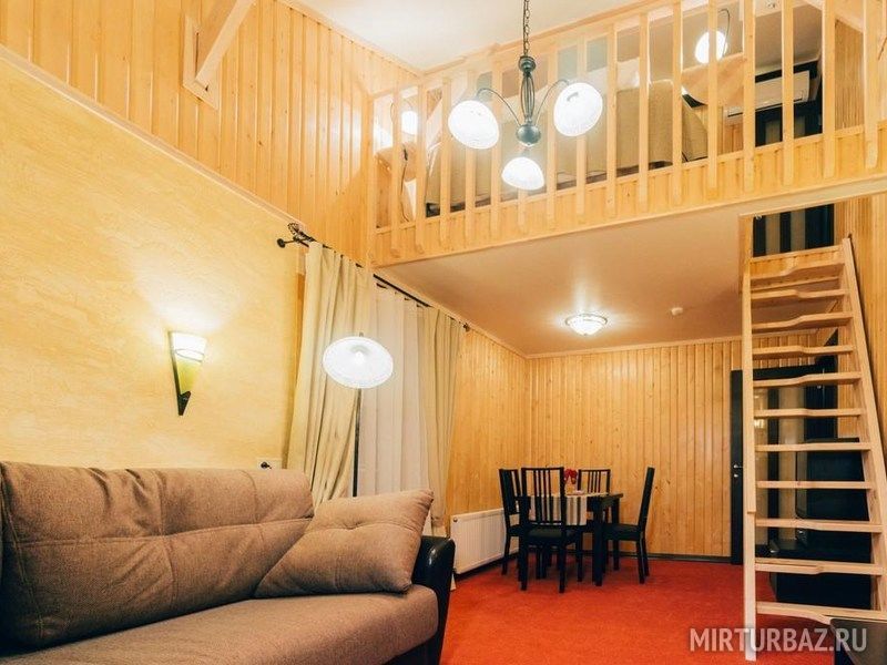 Двухэтажный дом с просторным холлом. В доме – камин, современная кухня, русская печь и шесть комфортных комнат (15 спальных мест). Дом расположен на территории Виллы Вителе.