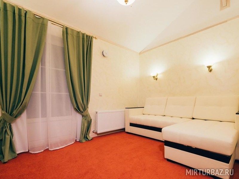 Номер с балконом, собственной ванной комнатой и гостиной зоной. 2-й этаж отеля. В каждом номере: гостиная с мягким, удобным диваном, спальня, ванная комната, балкон, телевизор, кондиционер.