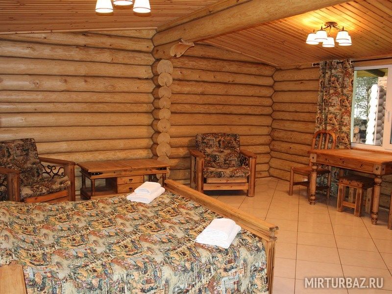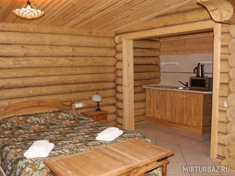 В номерах: просторная комната с удобной двуспальной кроватью, ванная комната, мебель ручной работы, кухонный уголок с мойкой, чайником, микроволновой печью, и посудой.