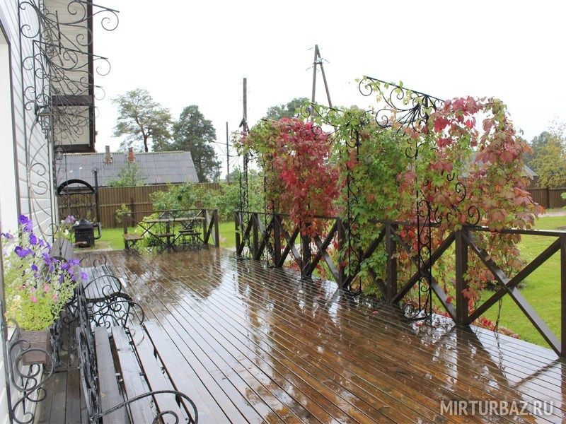 Рядом, на террасе — уличные столы для большой компании.