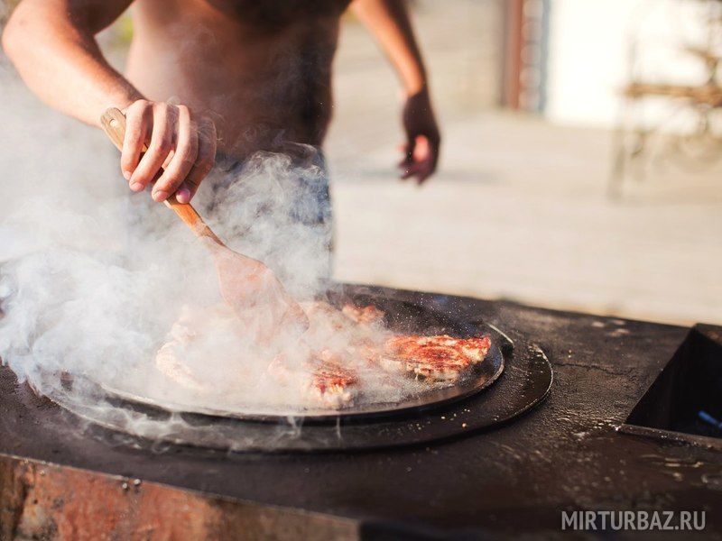 К Вашим услугам великолепный большой мангал с крышей. Он позволяет готовить Ваши любимые блюда на свежем воздухе в любую погоду.