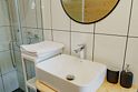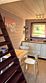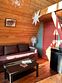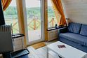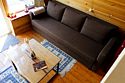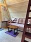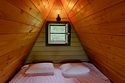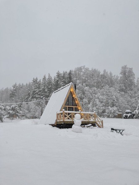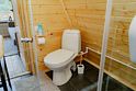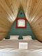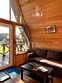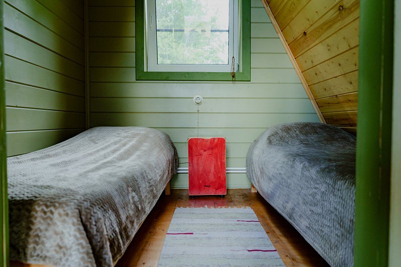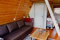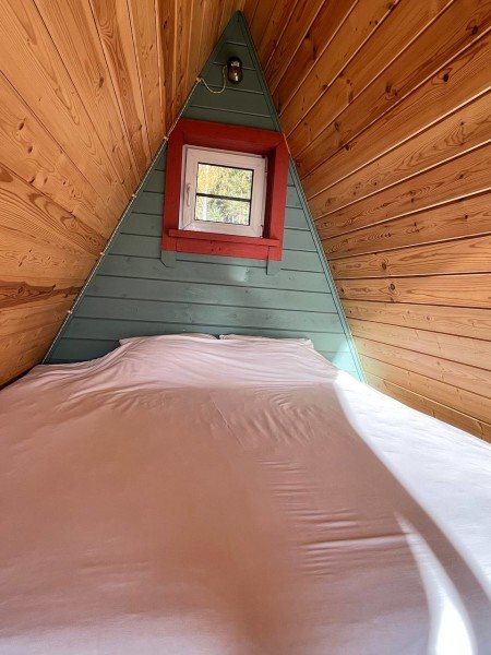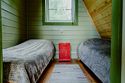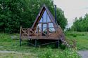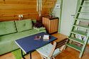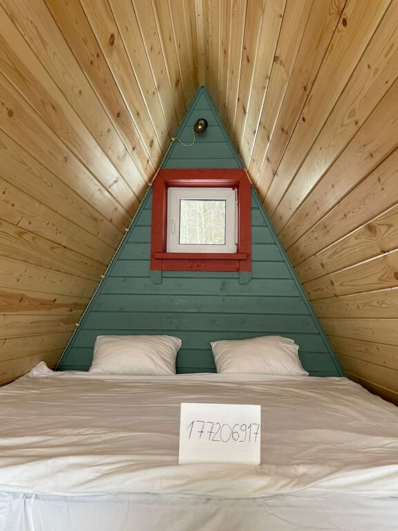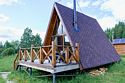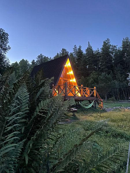 Двухэтажный 6-местный дом. Дровяной камин, душевая кабина и туалет, полноценная кухня с газовой плитой, посуда, холодильник. На первом этаже — раскладной диван и отдельная спальня с двумя кроватями, на втором — большое двухспальное место.