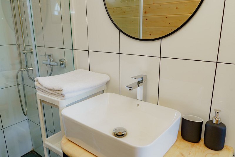 Инфраструктура: зона отдыха, простыни, чай/угощенияРасположение: выход к озеруУютная баня на 4 человек. Находится на берегу озера, в которое можно нырнуть прямо с пирса. Предоставляется все необходимое для парения: простыни, чай, эфирные масла — бесплатно.