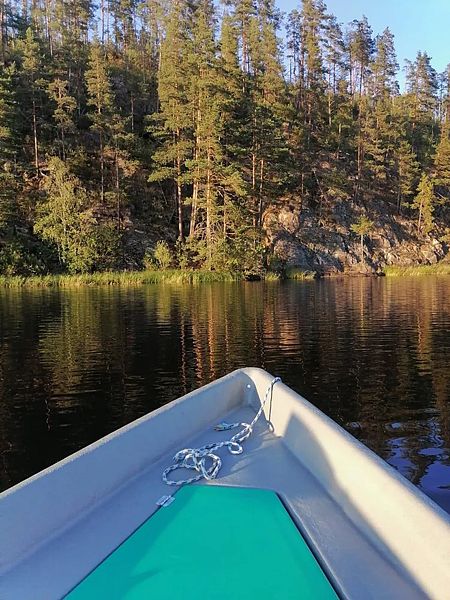 Возьмите на прокат лодку, чтобы неспеша проплыть по спокойным водам Нейсмери — залива Ладожского озера. С воды открывается потрясающий вид на высокие лесистые скалы, до которых можно добраться только водным путем.