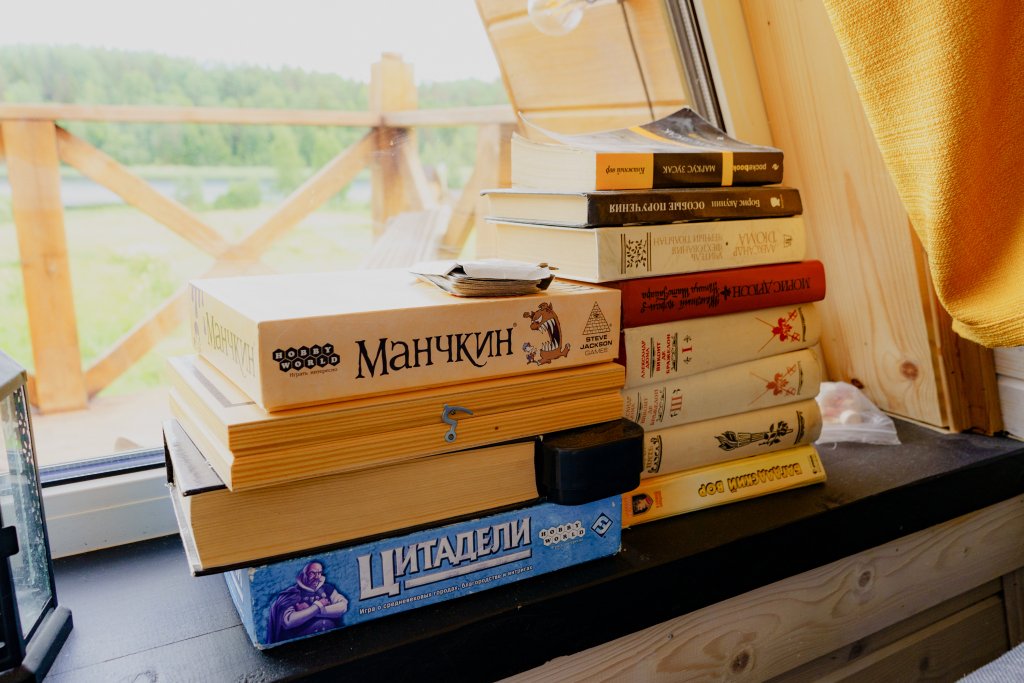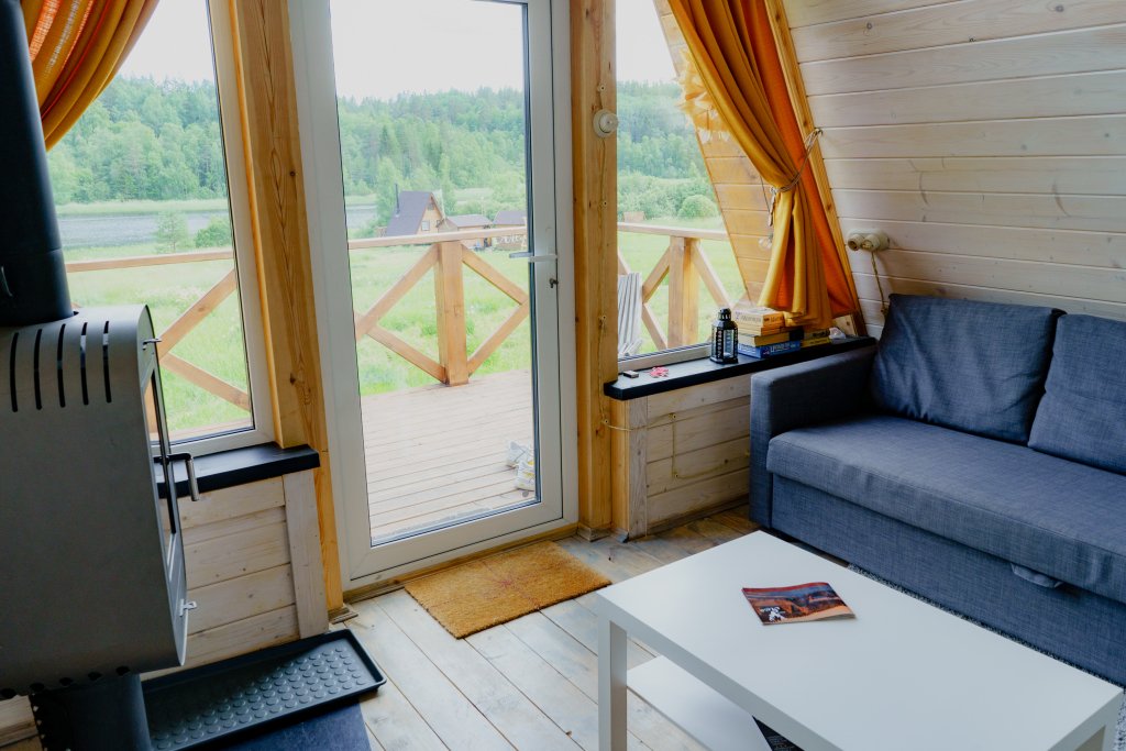 Круглый год — высыпаться, замедляться, отдыхать от города и информационного шума. Гулять по лесу и скалам. Сидеть с книжкой или глинтвейном у камина, играть в настолки (в каждом доме есть небольшой набор). Ловить рыбу (спиннинг — 500 ₽/день). Париться в бане (3000 ₽ за 2 часа, далее 1000 ₽/час, вместимость до 4 человек).