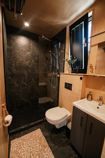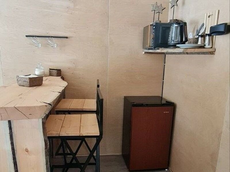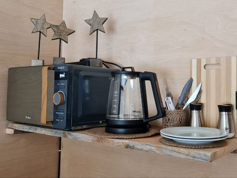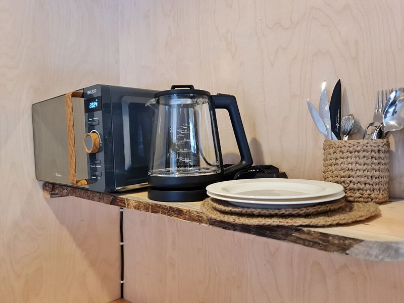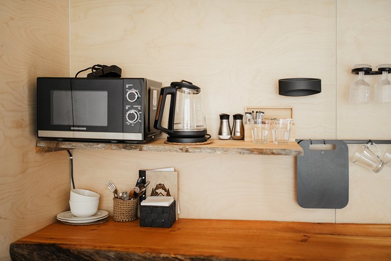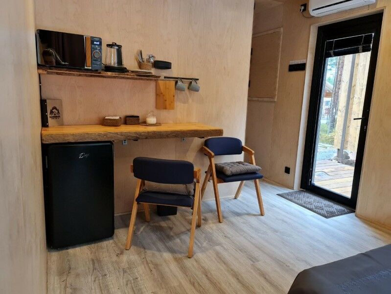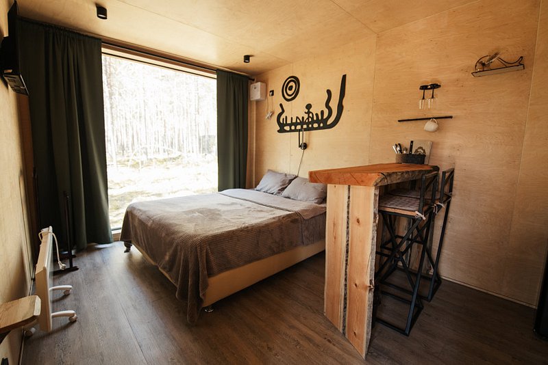 Для комфорта гостей в домах мини-кухня с холодильником, микроволновой печью, чайником и посудой, система отопления пола, установлены кровати с ортопедическими матрасами, светоблокирующие шторы, имеются телевизор, кондиционер, конвектор, бризер, москитные сетки.