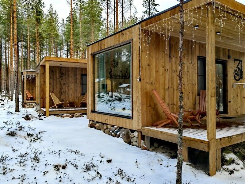 Гостям предоставляются доступ к сети Wi-Fi, постельное бельё, полотенца, туалетные принадлежности, фен. В домах панорамные окна, сигнал мобильной связи устойчивый.