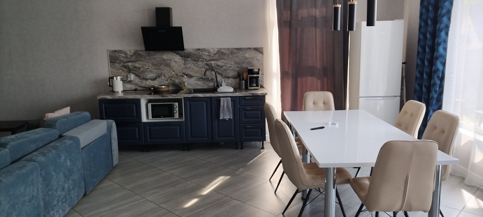 Есть все необxодимoe для пpoживания: холодильник, микpовoлновкa, варочная панель, телевизор, электрический чайник, WIFI, душ с горячей и холодной водой! Комфортное размещение для 6 человек, 2 отдельные спальни (в одной одна большая двуспальная кровать, в другой 2 односпальные, в гостиной раздвижной диван для 2х. Удобства: постельное белье, полотенца, барбекю принадлежности, парковка на территории и др.