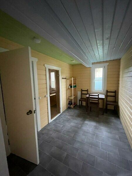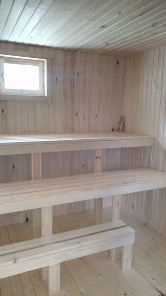 Просторная дровяная сауна с комнатой отдыха и террасой.