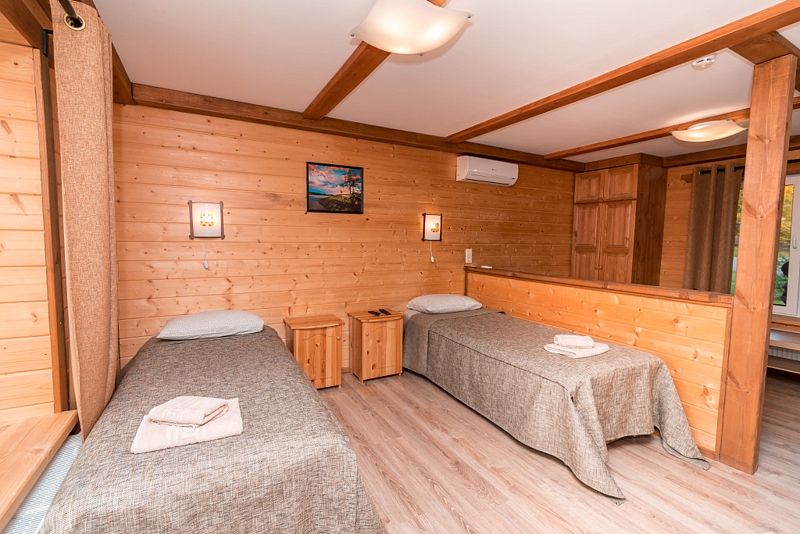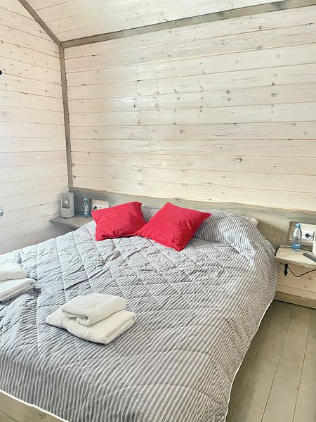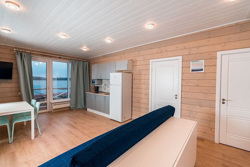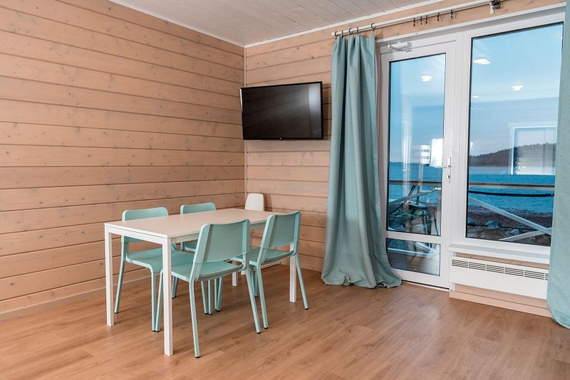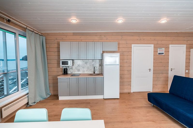 Путешествие с семьейЗамечательное местоЕхали с опасениями из-за неоднозначных отзывов в сети - кому-то очень понравилось, а кто-то остался недоволен. В итоге нам все понравилось, включая ресторан, хотя мы достаточно придирчивы в еде. Завтраки (включены в оплату) просто супер: шведский стол на любой вкус от сосисок с омлетом до каш, запеканок и мини-кексов, из напитков - и кофе на любой вкус, и чай, и лимонад. В общем, на завтрак бежали с удовольствием. И в целом меню ресторана очень хорошее, еда вкусная, мы пробовали разное, есть позиции сильнее и слабее, в целом - на очень хорошем уровне. Само место - просто замечательное, на берегу Ладожского озера, умиротворенно, ухоженная территория, красивые виды, есть скамейки на берегу. Домик у нас был с видом на озеро, уютный, чистый. Прямо у входа в каждый номер - небольшая скамейка, на которой очень приятно посидеть на воздухе. В номере сплит-система, в душевой - пол с подогревом. Я придирчивая к матрасам в целом осталась довольна. Спалось хорошо. Единственный минус - вода из-под крана, судя по всему какие-то проблемы со скважиной, у воды неприятный запах. Но это компенсируется руководством отеля - каждый день нам бесплатно приносили чистую питьевую воду в бутылках. В общем, мы остались очень довольны. И хотим приехать еще.
