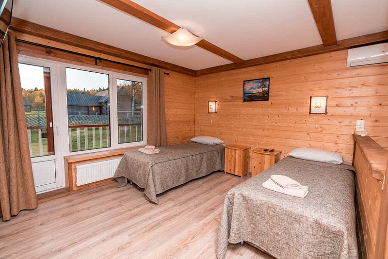 Комплекс предлагает разнообразные варианты проживания: от стильных двухместных номеров в домиках альпийской и норвежской деревень до необычного номера в форме мельницы и комфортабельных хаусботов — домов, покачивающихся прямо на воде. Для гостей, предпочитающих традиционный русский колорит, открыт большой деревянный терем, наполненный атмосферой тепла и уюта.