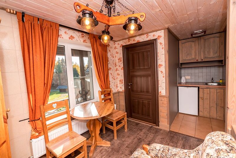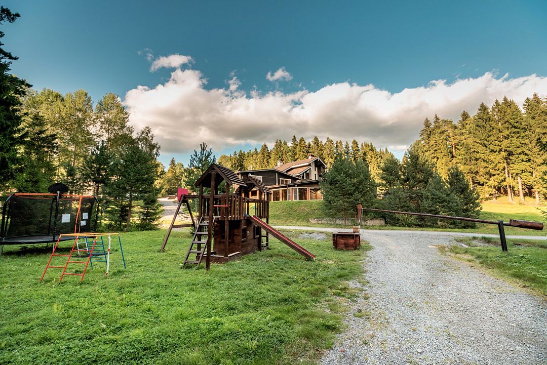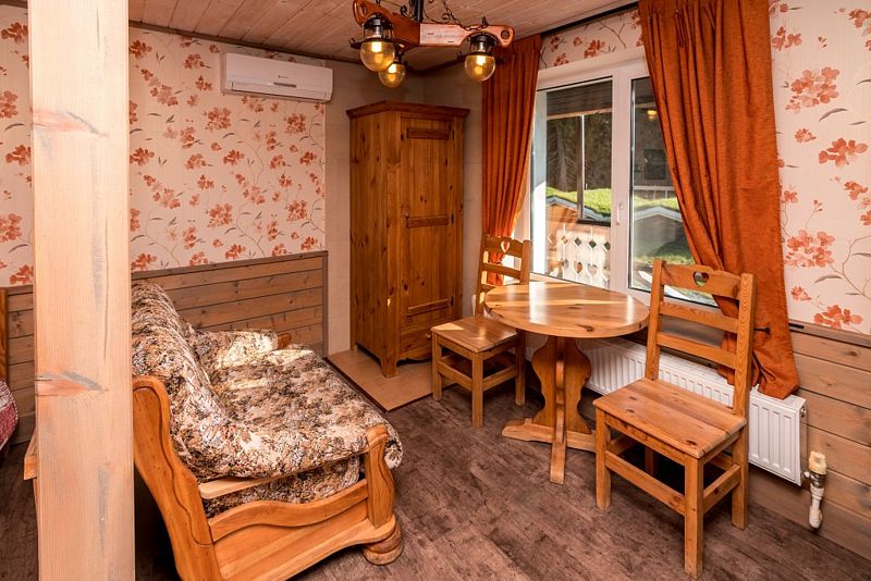 На территории комплекса обустроены детская площадка, банный комплекс с парными и спа-зоной, а также ресторан, где подают блюда русской и европейской кухни. Завтрак включён в стоимость проживания.