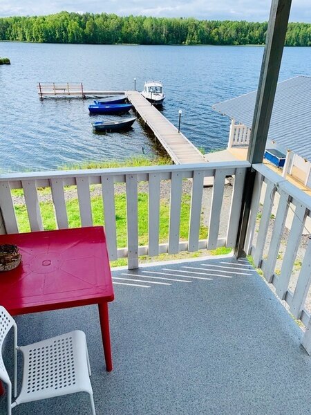 Шумоизолированные четырёхместные апартаменты с большим балконом на втором этаже с видом на озеро. Кухня и свой санузел. Двуспальная кровать и одна двухъярусная. Идеально для семьи с двумя детьми. Дом «Все отдохнут», Карелия, деревня Кулмукса, дом 2. На берегу Онежского озера.