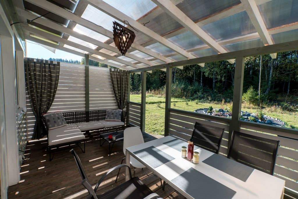 Комплекс разместился в окружении живописной карельской природы среди леса и скал. В распоряжении гостей одноэтажные просторные эко-дома, выстроенные в скандинавском стиле. Домики оборудованы всем необходимым для комфортного отдыха – предусмотрены санузел с душевой кабиной, собственная сауна с электрической печью Harvia, кухня с гостиной зоной