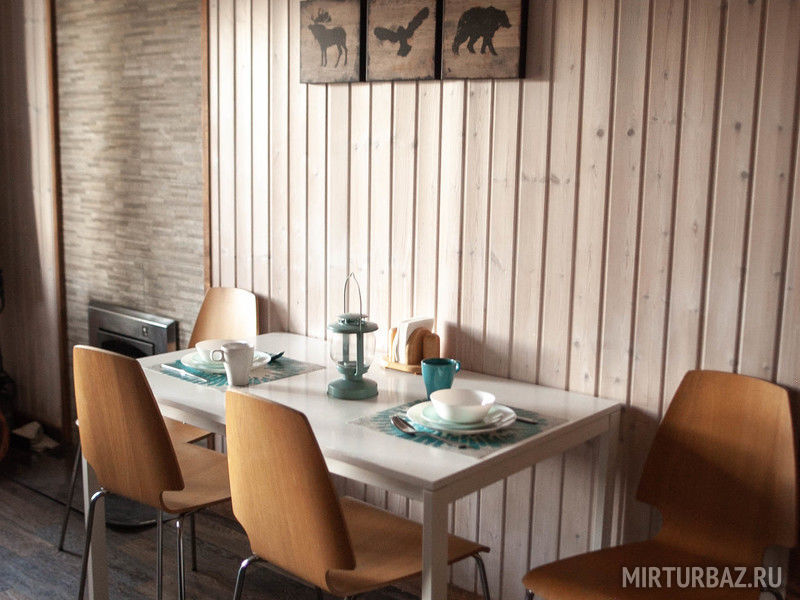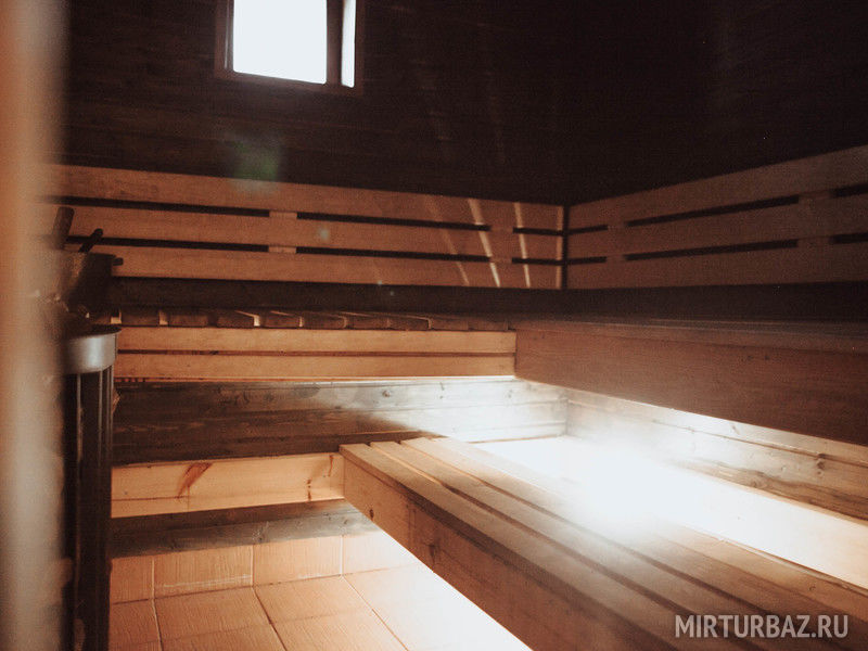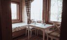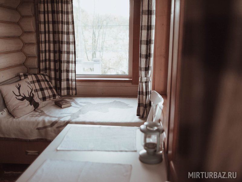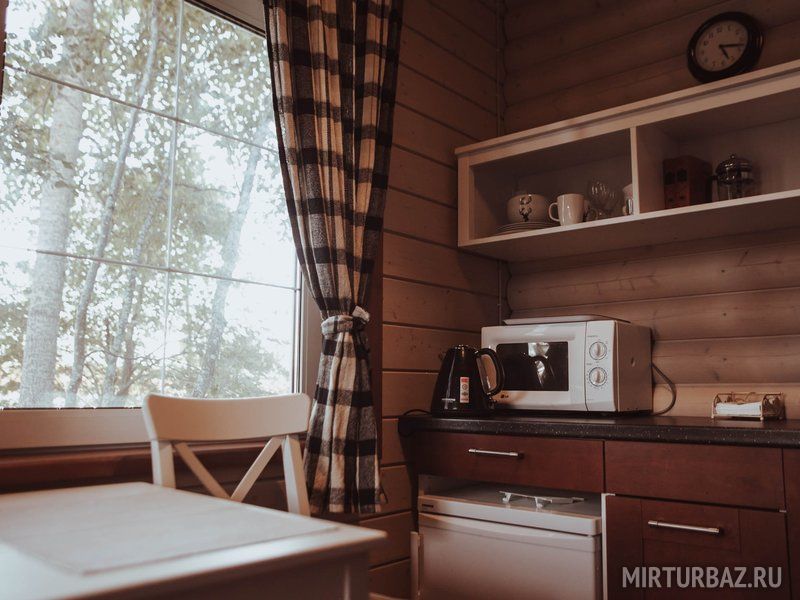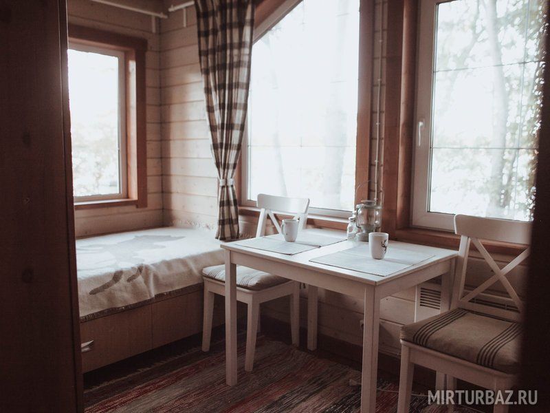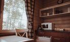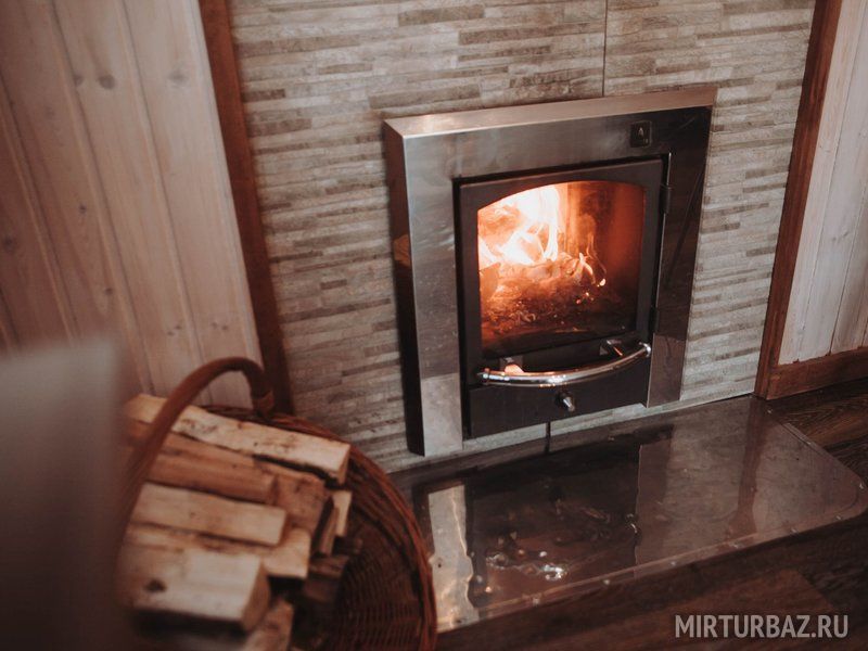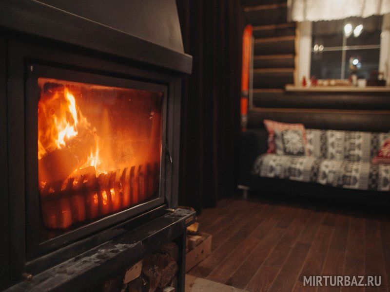 Домик финского типа с камином рассчитан на семью (2 взрослых + 1 ребенок, до 140 см).