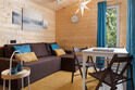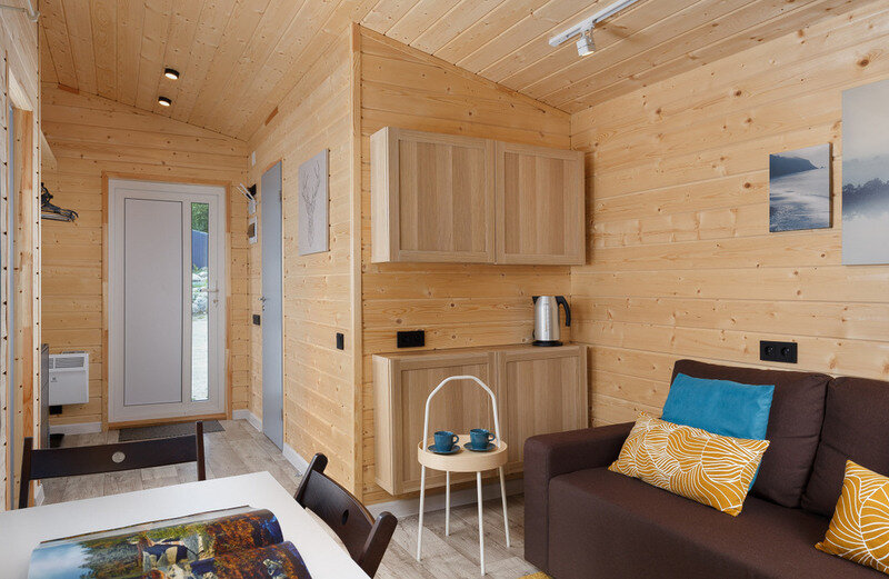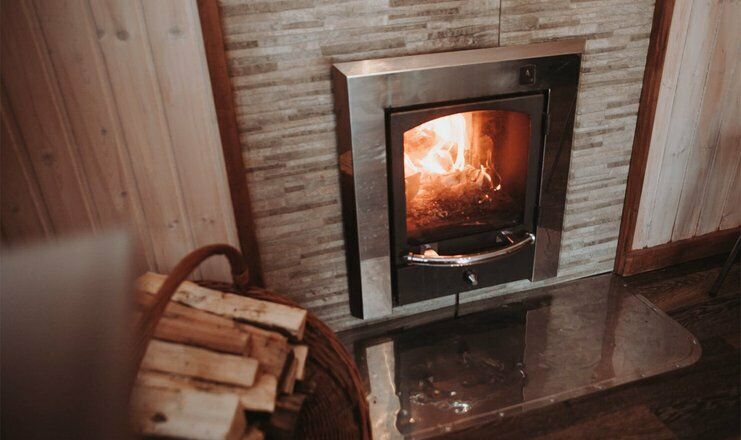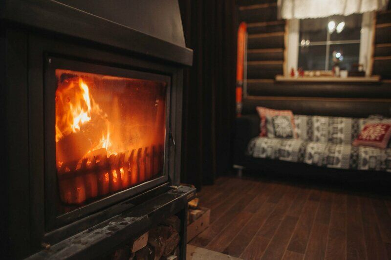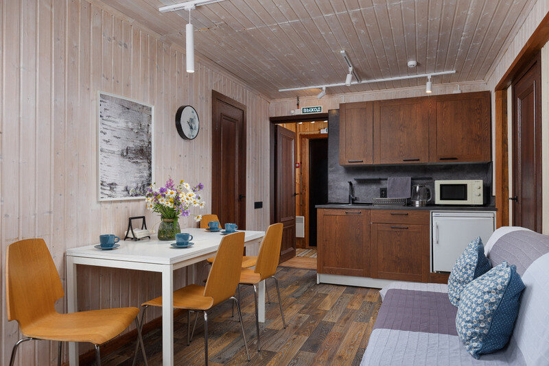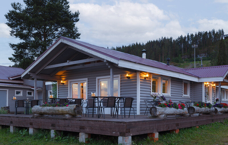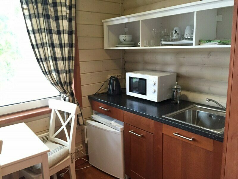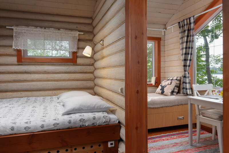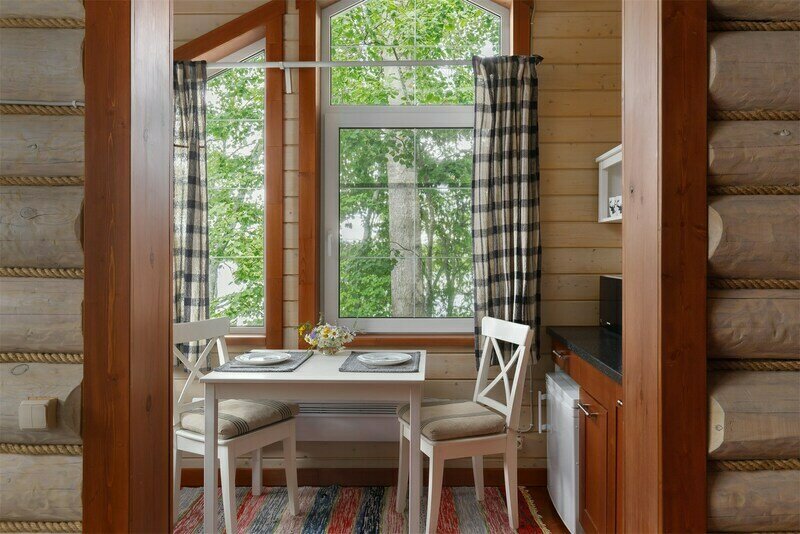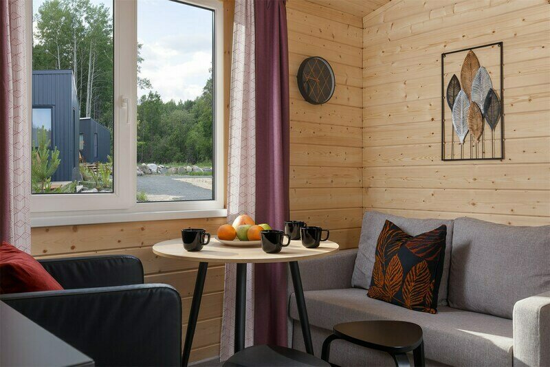 Домик финского типа с камином рассчитан на пару или семью ( 2 взрослых + 1 ребенок, до 140 см).
