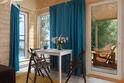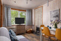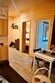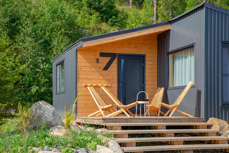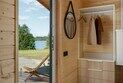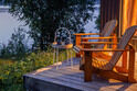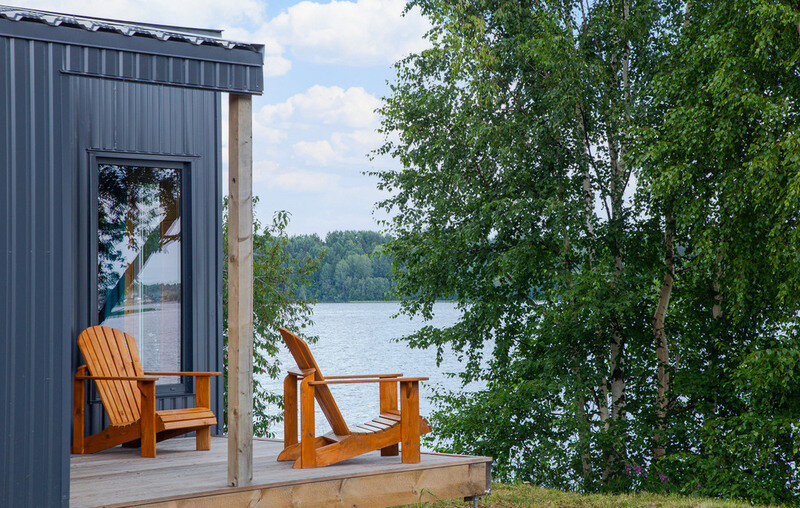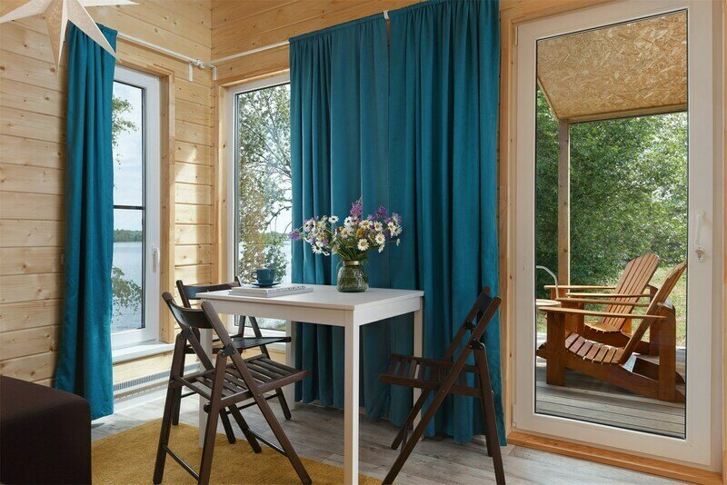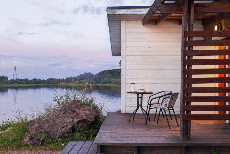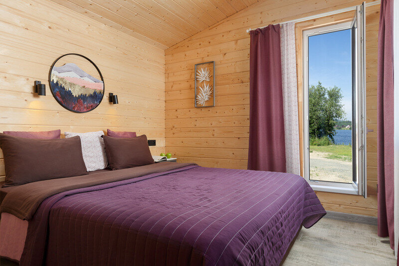 Тип планировки — студия, с видом на озеро и верандой. Есть зона барбекю. Полноценный санузел, миникухня (без плиты), холодильник, чайник, телевизор, микроволновка и раковина, шкафчики для хранения, гардеробная.