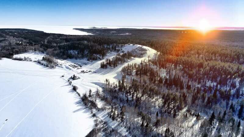 Экскурсия начинается с подъема на кресельном подъемнике на вершину годы, где откроется панорамный вид на Онежское озеро и зимний карельский лес. Дальше будет ждать долгий спуск по дорожке, извивающейся среди заросших деревьями и покрытых мхом величественных скал с вкраплениями вариолита.