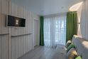 Комплектация: две спальни с двуспальными кроватями, тумба, стеллаж, обеденный стол со стульями, кухонная консоль, холодильник, электрический чайник, СВЧ-печь, столовая посуда, телевизор.
