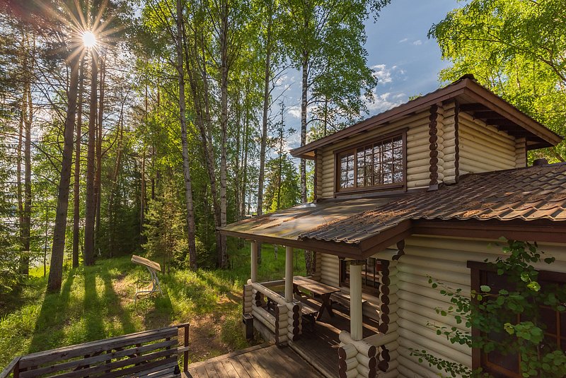 Двухкомнатный домик с отдельной гостиной и спальней. Здесь могут с удобством разместиться до четырёх гостей. Расположен домик всего в нескольких шагах от озера в окружении хвойного леса. В домике есть удобная мебелированная терраса, с которой открывается потрясающий вид на озеро. Здесь можно устраивать дружеские посиделки, наслаждаться рассветами и закатами и загорать в жаркие дни.