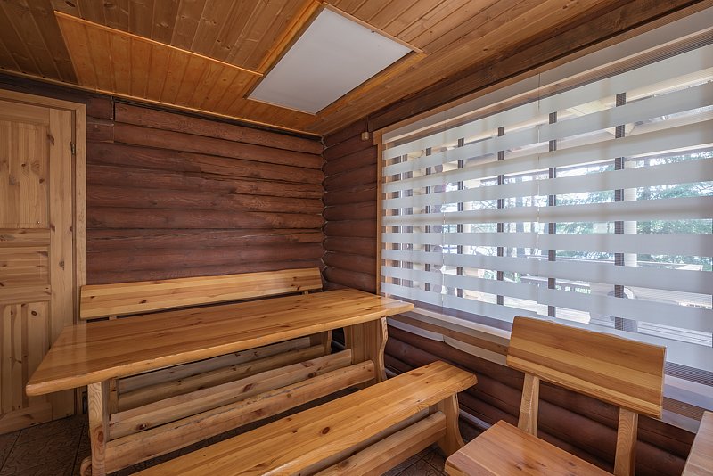 Живая баня на дровах, расположенная на берегу озера Янисъярви. В распоряжении гостей просторная парная с вениками, душевая с тропическим душем, уютная комната отдыха и терраса с живописным видом. Из бани предусмотрен выход к банному чану (услуга за дополнительную плату), а также удобная деревянная дорожка к озеру.