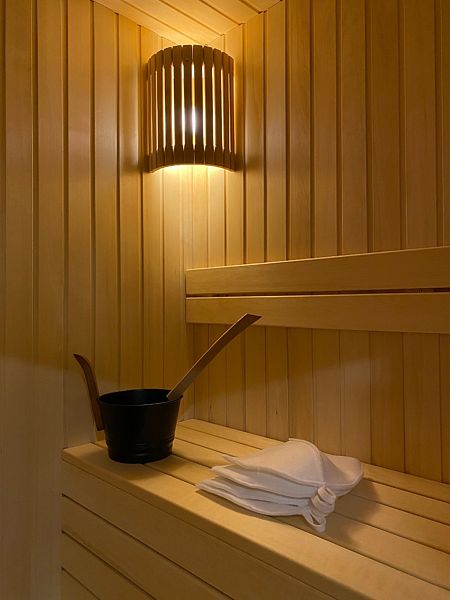 Сауна находится непосредственно в домике. Есть шапочки для каждого гостя.