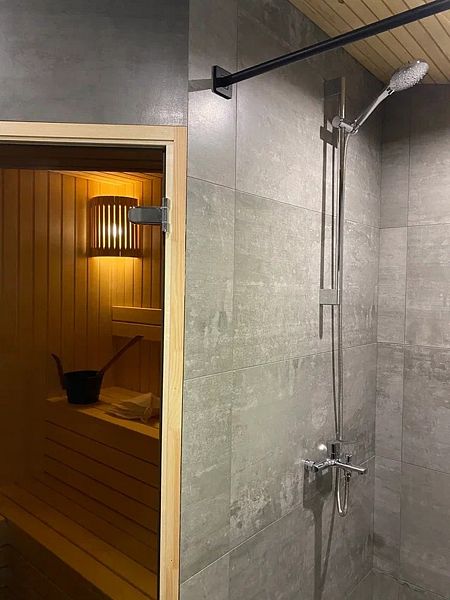 Инфраструктура: полотенца, шапочки, душСауна находится непосредственно в домике. Есть шапочки для каждого гостя.
