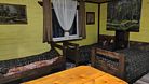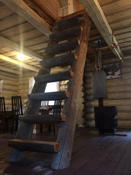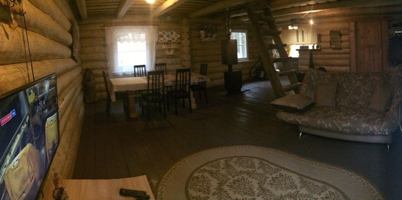 Первый этаж дома представляет собой большой зал, в центре которого расположен деревянный стол со стульями, диван и кресла для отдыха гостей. В вашем распоряжении будут телевизор, кухонный гарнитур с посудой и газовой плитой, печка с сушкой для одежды.