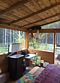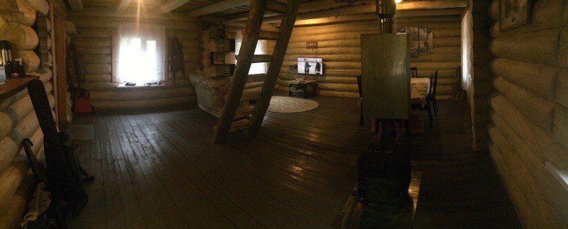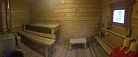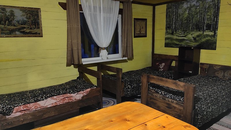 Дом из деревянного бруса, рассчитан на комфортное проживание трёх человек с возможностью организации ещё одного спального места. Дом одноэтажный с большой верандой, оборудованной большим столом, скамейками. В доме три односпальные кровати, небольшая кухня из массива сосны КЕЛО, газовая плита, обеденный стол, посуда, дровяная печь, рукомойник.