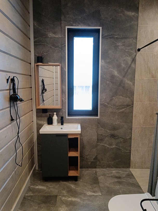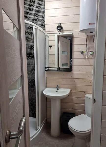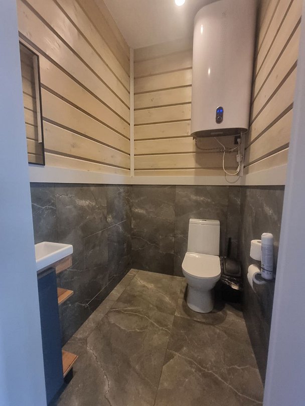 - туалетная комната: теплый пол, душ с горячей водой;