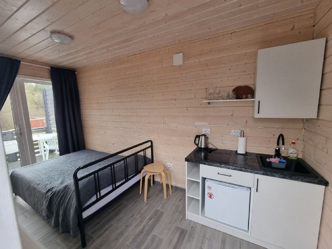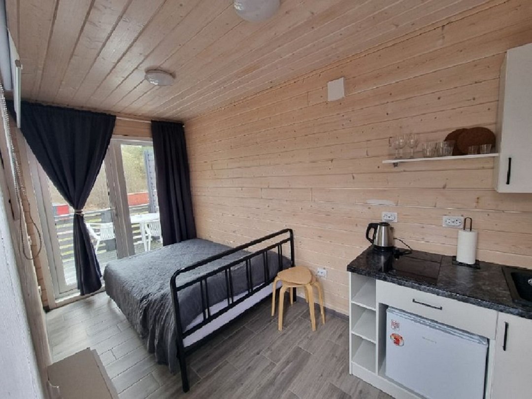 Гостевой дом предлагает четыре уютных модульных домика, расположенных прямо на берегу озера.