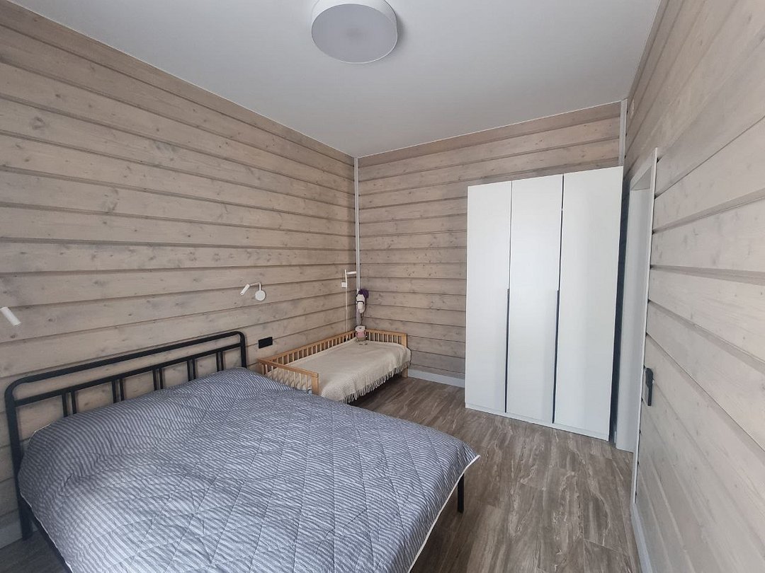- 3 спальни комнаты оборудованы двухместными кроватями (кровать и матрас Аскона -140×200), комплект постельного белья и полотенец,шкаф,розетки около кроватей, доп.место в одной их комнат