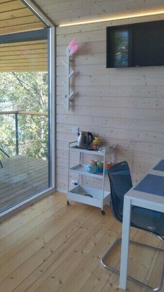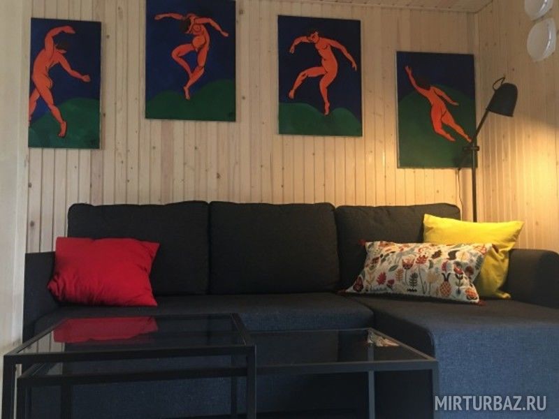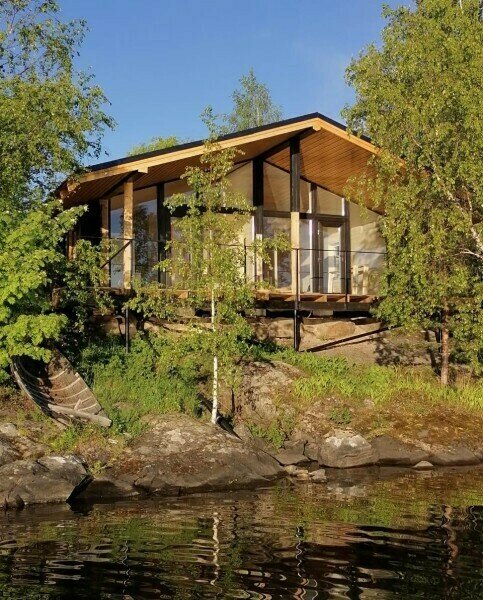 Дом на Скале с панорамными окнами и шикарным видом на Пертозеро. Общая площадь 42 кв.м. Внутреннее пространство организованно как студия – гостиная с камином, кухня , столовая зона с панорамными окнами и прихожая, и отдельная комната - спальня. Максимальная вместимость дома – 5 чел., но комфортная – семья из 3х чел. или две пары - 4 чел. На территории есть Русская баня.