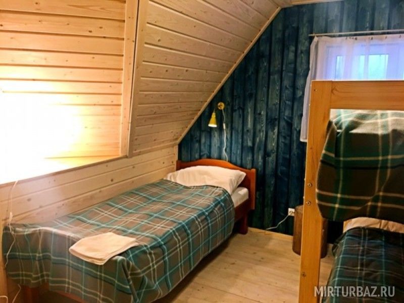 3-х местный мансардный номер с односпальной кроватью и двухъярусной кроватью.