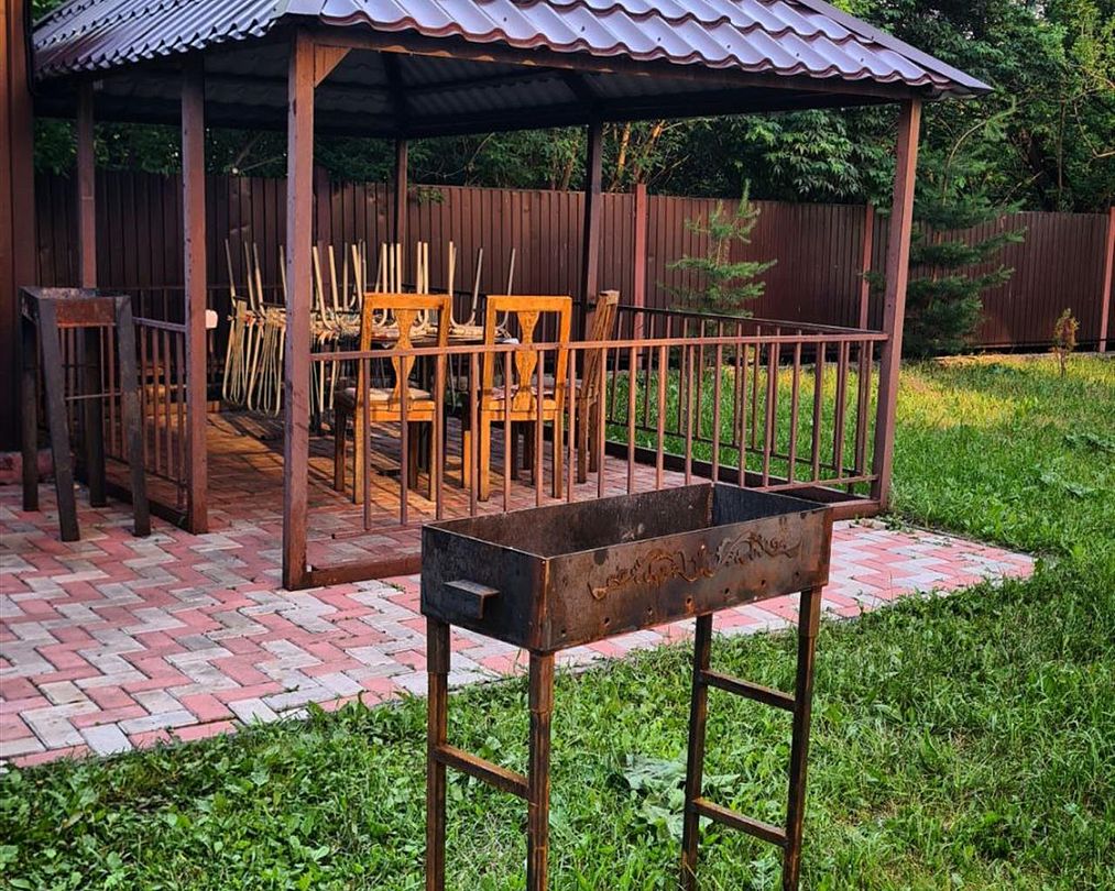В стоимость аренды входит: беседка с электричеством и освещением, деревянная мебель, а также мангал и решетки.