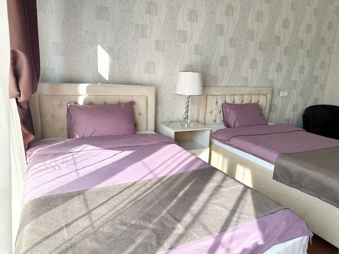Представляем Вам стандартный, комфортабельный "Twin Standart с диваном" (стандартный с диваном). В гостевой комнате : 2 односпальные кровати (120 х 200 см.) с матрасами "Askona", диван 140*200, Wi-Fi, звукоизоляция, шторы «Blackout», ванная комната с косметическими средствами, феном и тапочками, LCD телевизор. Рабочая зона с просторным столом будет полезна для тех, кто находится в деловой поездке. БЕСПЛАТНО: - парковка - чай и кофеУслуги и удобства