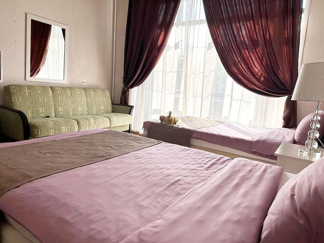 Просторный Люкс площадью 35 кв.м с двумя 1,5 кроватями и с раскладывающимся диваном-оптимальный вариант для размещения, если вы путешествуете в компании.Услуги и удобства