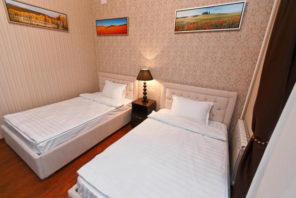 Представляем Вам, "Twin Standart" (двухместный стандартный). В гостевой комнате : 2 односпальные кровати (120 х 200 см.) с матрасами "Askona", Wi-Fi, звукоизоляция, шторы «Blackout», ванная комната с косметическими средствами, феном и тапочками, LCD телевизор. Рабочая зона с просторным столом будет полезна для тех, кто находится в деловой поездке. БЕСПЛАТНО: - парковка - чай и кофеУслуги и удобства
