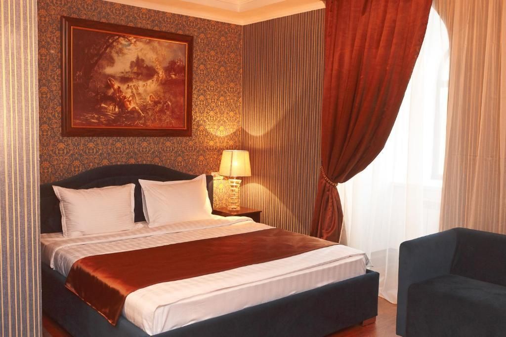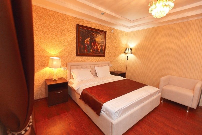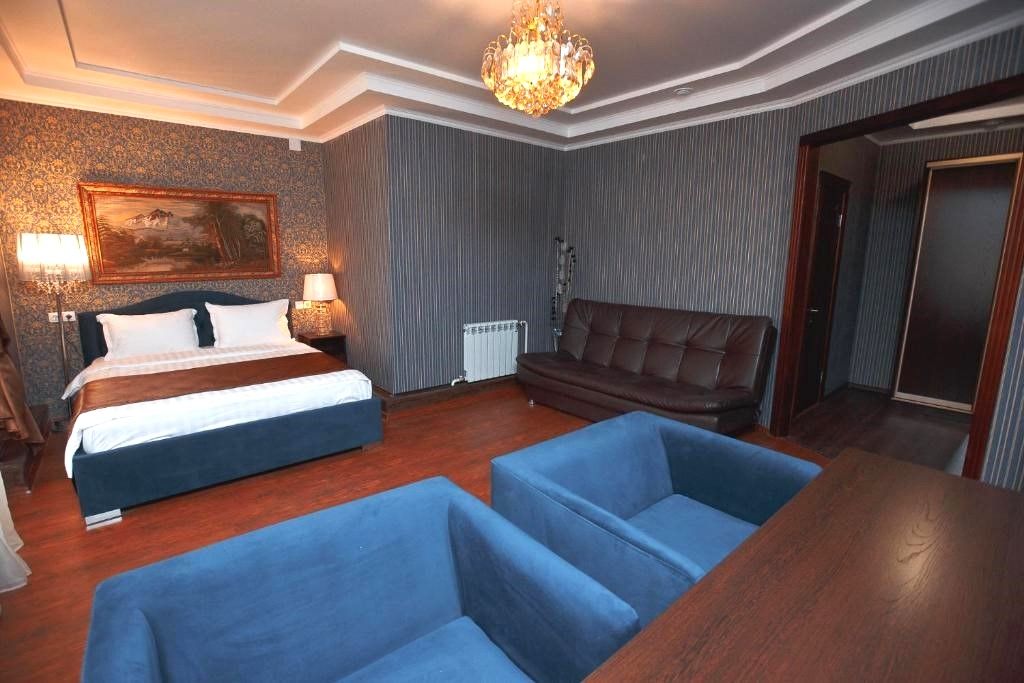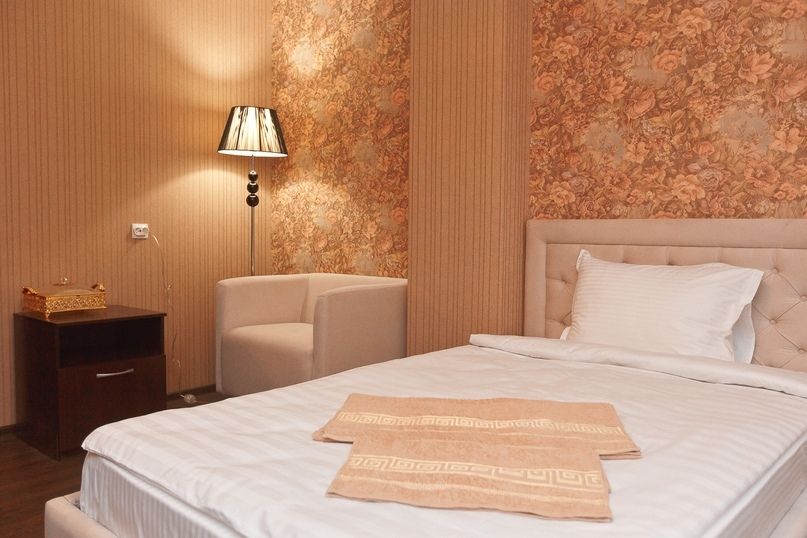 Изысканный и просторный Люкс Премиум предлагает своим постояльцам идеальную обстановку для максимально комфортного пребывания. Пространство гостевой комнаты разделено на спальную зону и гостиную зону с мягкой мебелью. В распоряжении Гостей двуспальная кровать размером 180*200 см с высококачественным постельным бельем, ортопедическим комбинированным матрасом.Услуги и удобства