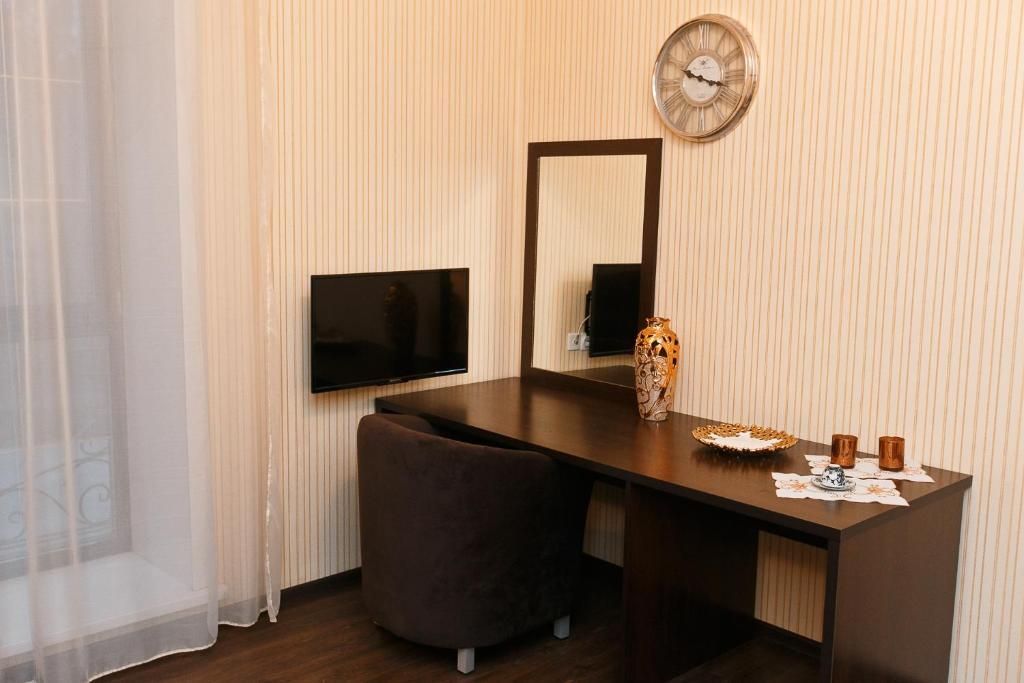 гостевая комната Полулюкс прекрасно подойдет для отдыха семейной пары с детьми. Здесь можно укрыться от суеты большого города и расслабиться, любуясь видом территории гостевого дома. Мы позаботились об удобной кровати и современной мебели, а также о самых необходимых бытовых мелочах.Услуги и удобства