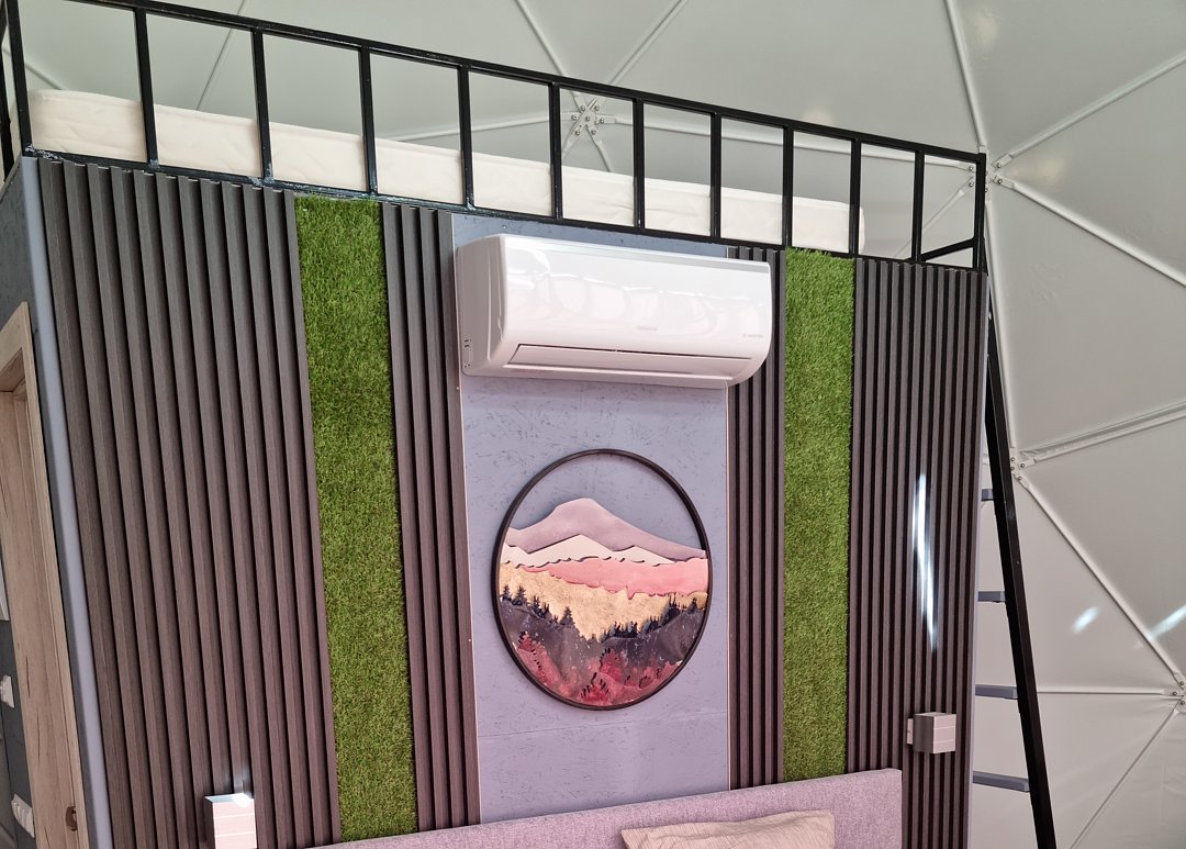 Глэмпинг – отличный вариант для тех, кто любит быть ближе к природе, но не готов отказаться от комфорта. Он находится в окружении живописной сибирской природы, отовсюду открываются панорамные виды на горы. Комплекс расположен на закрытой территории и включает в себя 5 отдельно стоящих купольных дома с террасами. Дома полностью оборудованы для круглогодичного проживания – оборудованы печами-камины, теплыми полами, установлены кондиционеры, везде предусмотрена своя ванная комната с душевой кабиной, есть необходимая мебель и техника: холодильник, электрочайник, фен.