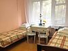 Туалет в номере, душ на этаже. Одна односпальная кровать и одна двухъярусная, стол, 3 табурета, 3 тумбочки, шкаф с полками, поднос, графин, 3 стакана, зеркало в санузле, вешалка настенная.