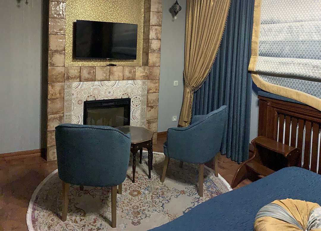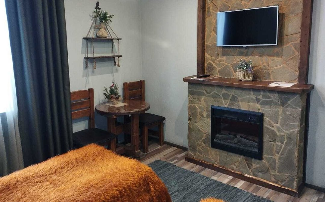 2-спальная кровать, ТВ, холодильник, чайник, камин, фен, с/у с душем.