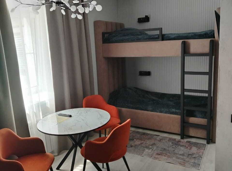 2-ярусная кровать, диван, ТВ, холодильник, чайник, фен, халат, тапочки, с/у с душем.