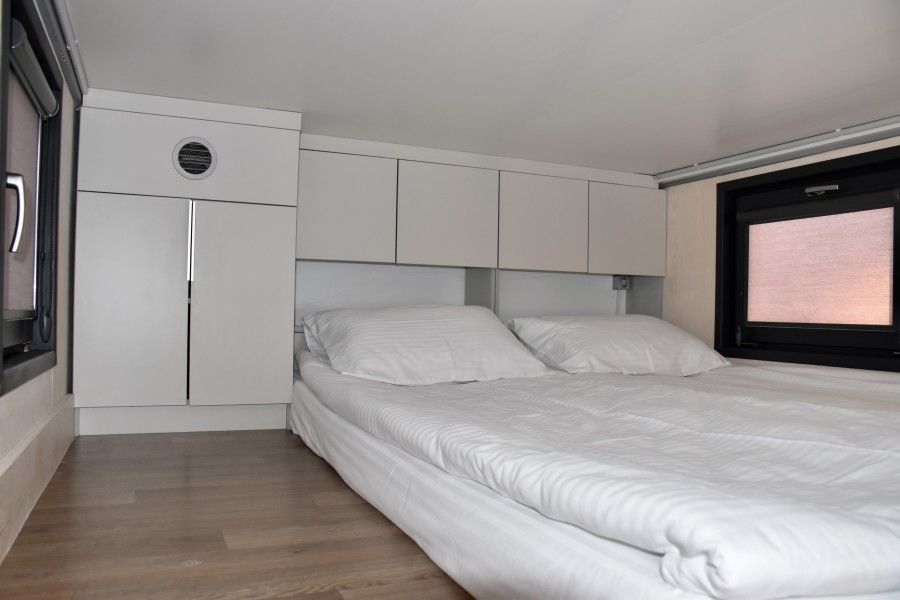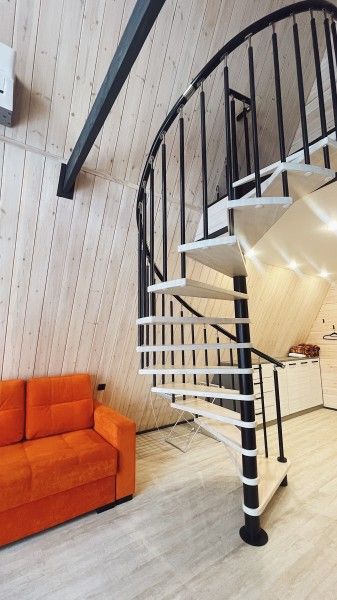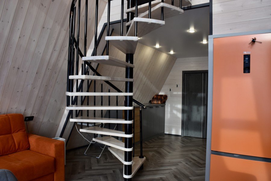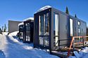 Небольшой домик площадью 25 кв м с панорамными окнами и антресолью. Подходит для размещения 2-4 человек.