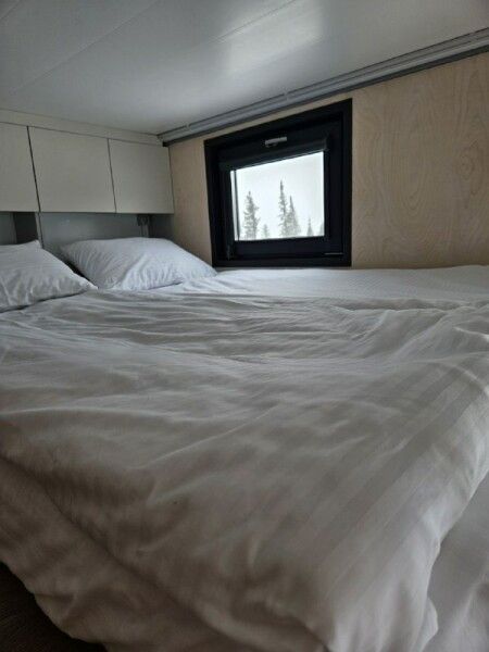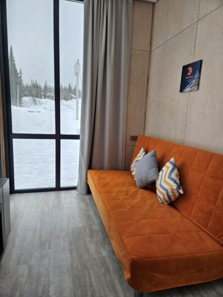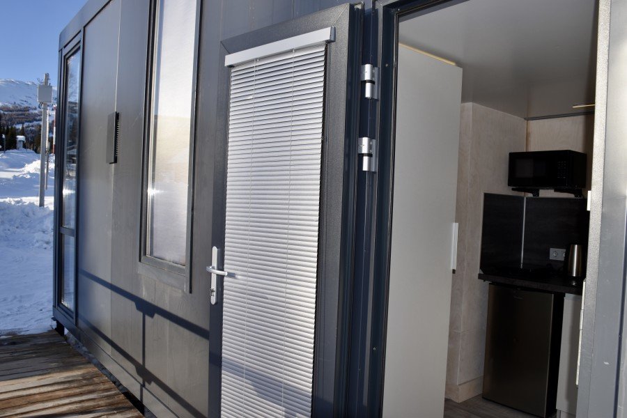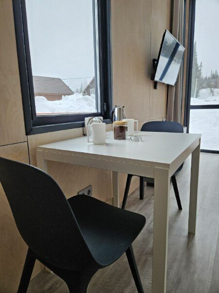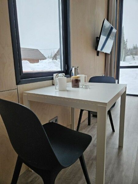Небольшой домик площадью 25 кв м с панорамными окнами. Подходит для размещения 2-4 человек.