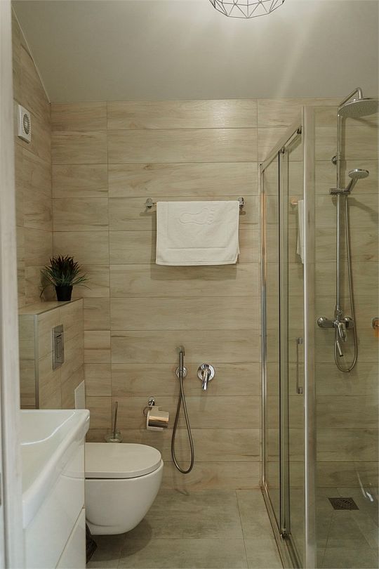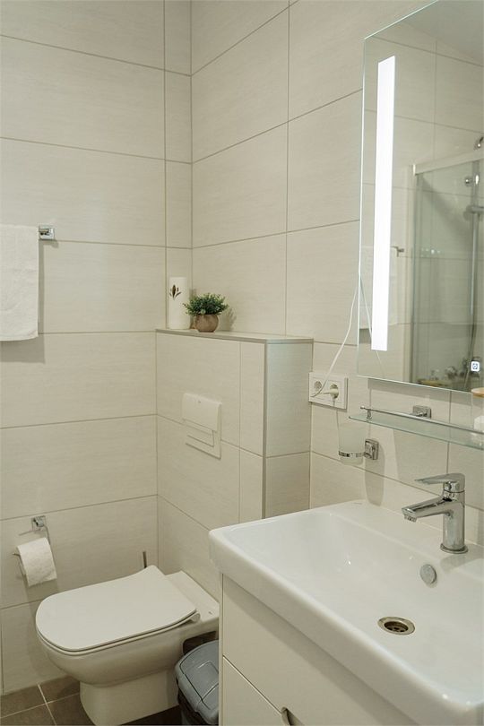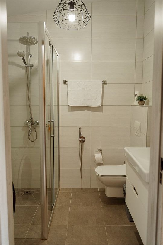 Морозильная камера, гигиенический душ, высокие потолки, две спальни, плиточное покрытие.