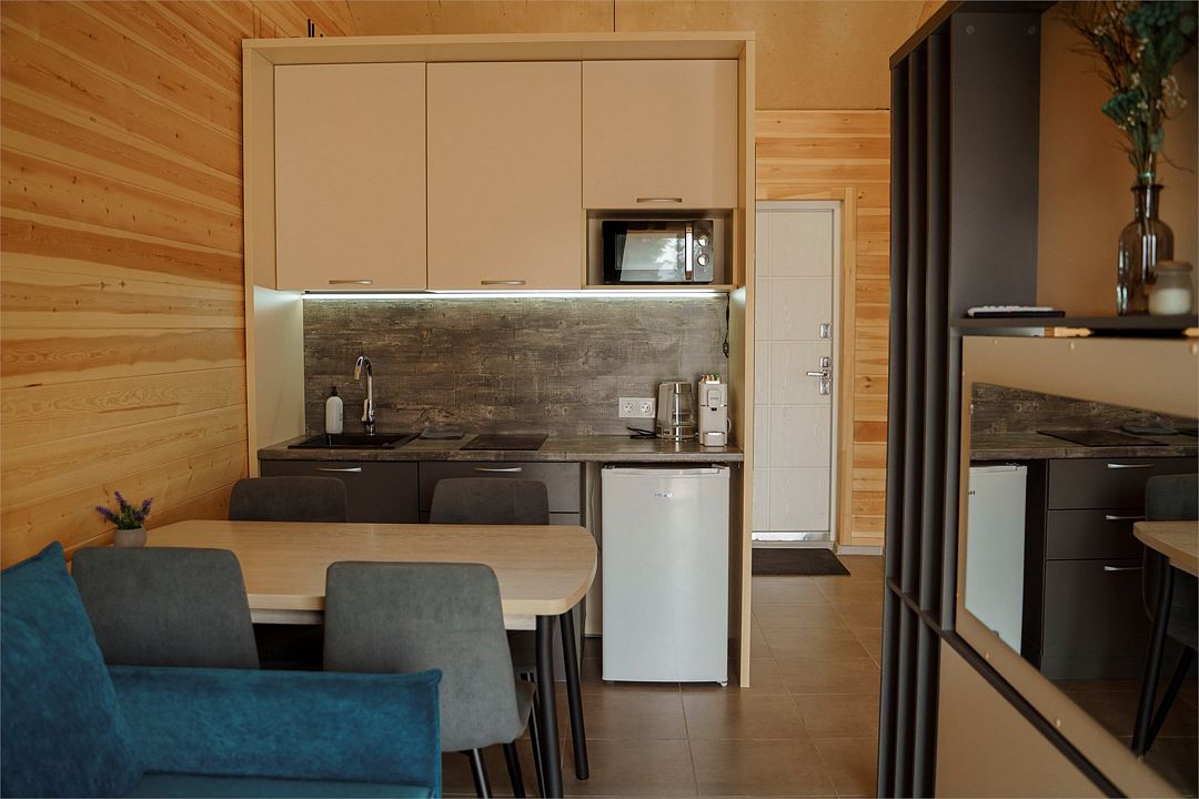 Рядом с каждым домиком есть мангальная зона, где вы сможете приготовить ароматные блюда на огне после насыщенного дня на свежем воздухе.