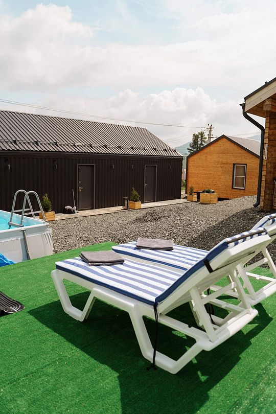 Тип бассейна: открытый бассейн, каркасный бассейнВода в бассейне: подогреваемый бассейнРядом с бассейном: шезлонгиПериод работы: летний сезон -