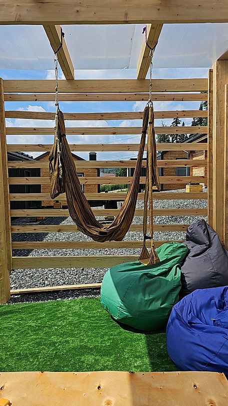 Зона отдыха прекрасно подходит для медитаций и антигравити-йоги, для этого подготовлены в этом сезоне гамаки для йоги.